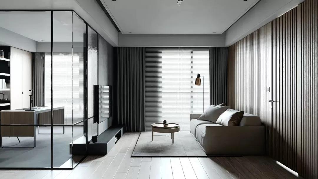 玻璃的材質明亮通透,有著擴大空間的視覺效果,又可以大大提高室內采光,且大小戶型皆適用,是非常流行的軟隔斷方式。